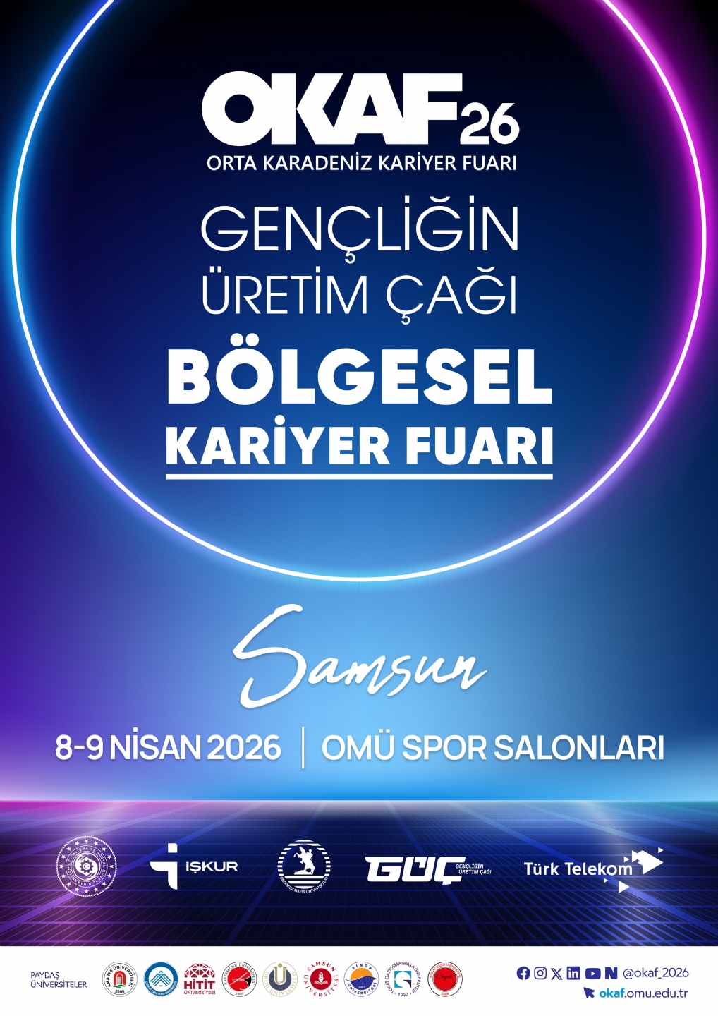 Web site: https://okaf.omu.edu.tr Ondokuz Mayıs Üniversitesi Yaşar Doğu Spor Bilimleri Fakültesi Salonlarında ve Atatürk Kongre ve Kültür Merkezinde düzenlenecek olan fuarın paydaş üniversiteleri Amasya Üniversitesi, Çankırı Karatekin Üniversitesi, Hitit Üniversitesi, Kastamonu Üniversitesi, Ordu Üniversitesi, Samsun Üniversitesi, Sinop Üniversitesi, Tokat Üniversitesi ve Yozgat Bozok Üniversitesi.
